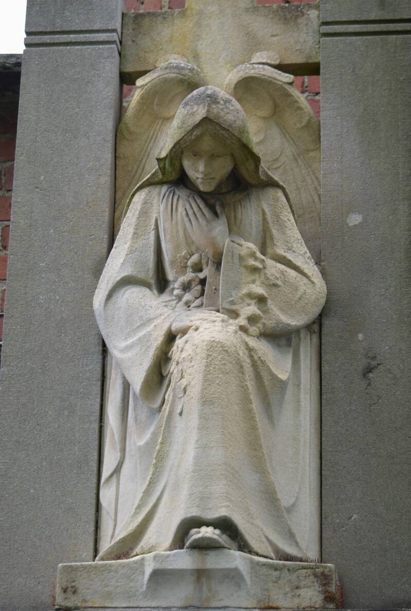 deze drie foto's bekijken het graf zelf van de beeldhouwer, een beeld in zandsteen en zure regen zijn echt geen vrienden, we moeten iets doen maar wat???? Kenners verklaren op de facebook dat alle hulp eigenlijk al TE LAAT IS.. jammer, echt triest, in dezelfde rij gaat een ander beeld van jules dezelfde weg op, vrienden, erfgoed beheren doet u niet alleen vanachter een pc, soms is harde actie nodig (ontvoeren dus!).