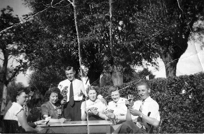 café PONDEROSA met baas Jozef Van Cauter, willy de smet, eric steurbaut, erik piens, georges de nutte en rechts de tweede is willy malyster.